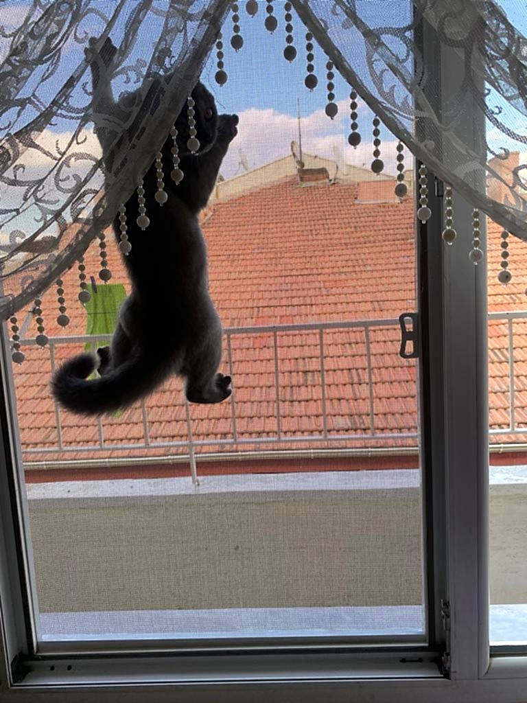 Açılabilir pencere sistemlerine uygun şekilde hazırlanır. Kedinizin pencereye çıkarken dışarı atlamasını engeller.Kapı Kedi Sinekliği